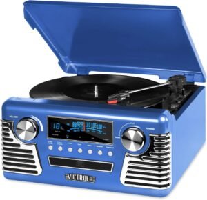 Eleganckie wykończenia skórzane, widoczne wirujące płyty i dopracowane detale odtwarzają urok tradycyjnych systemów audio, podczas gdy Bluetooth, odtwarzanie USB i wbudowane głośniki sprawiają, że słuchanie w domu jest bezwysiłkowe.